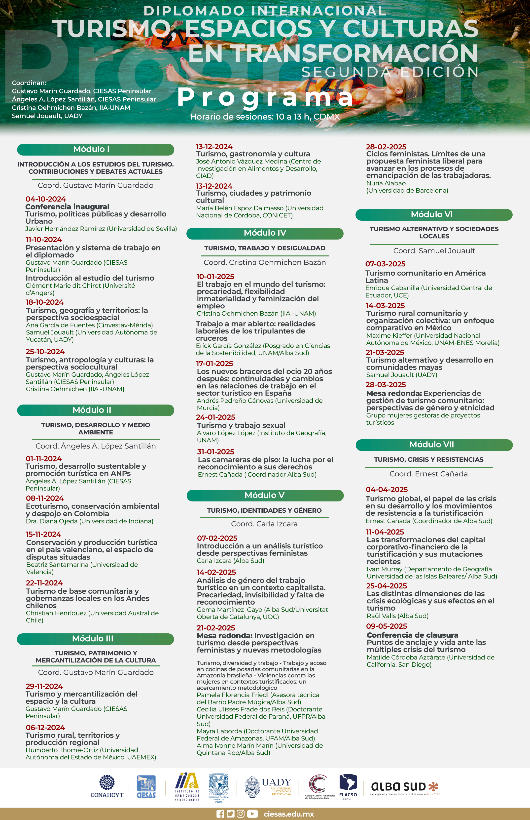 - Mayores informes y registro de postulaciones: diplomadoturismo@ciesas.edu.mx
